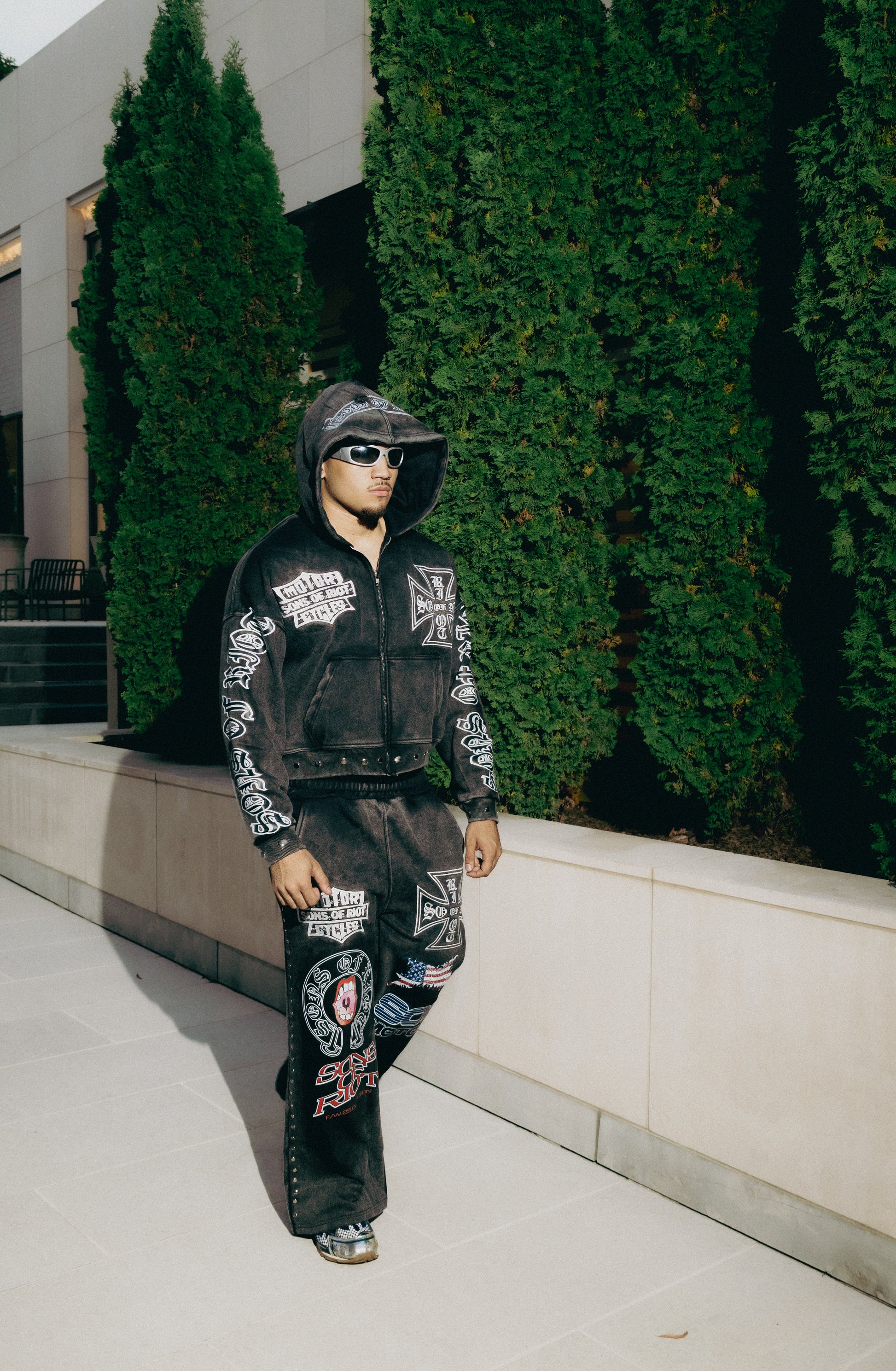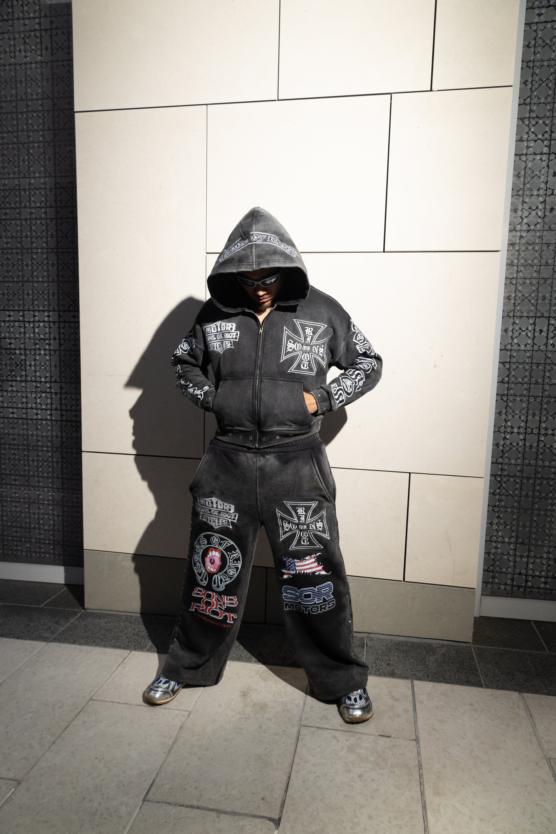 Titanium Heavyweight Zip Jacket Sweatsuit Charcoal Suit White logos and Embroidery